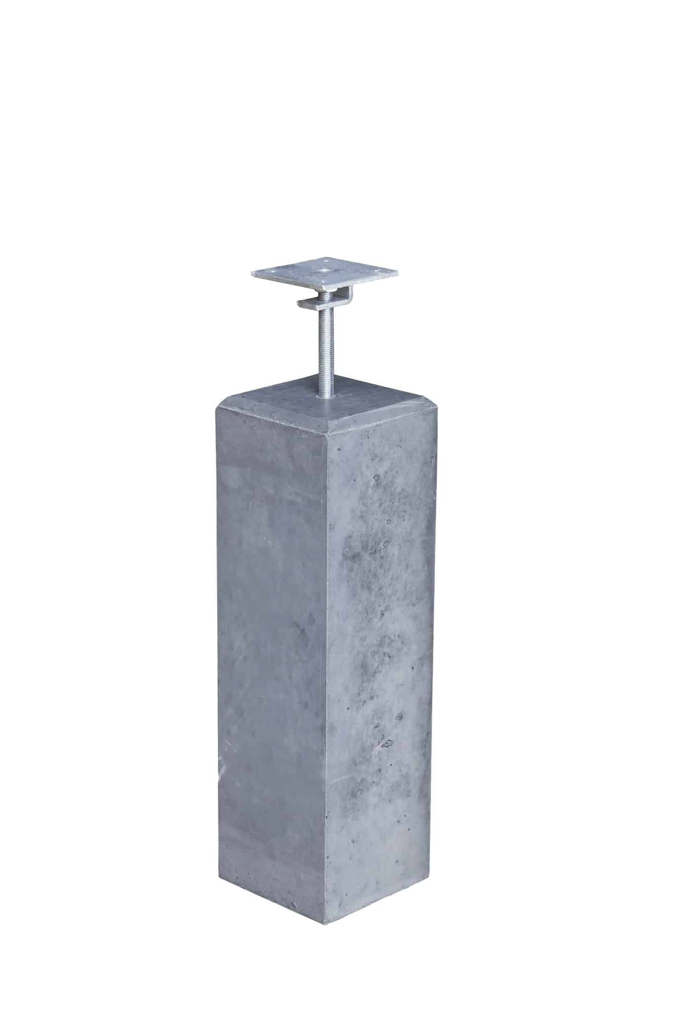 Beton poer inclusief stelplaat en facetrand. Kopmaat: 170×170 mm. Hoogte: 58 cm Draad M16: 15 cm in de poer, 15 cm boven de poer.