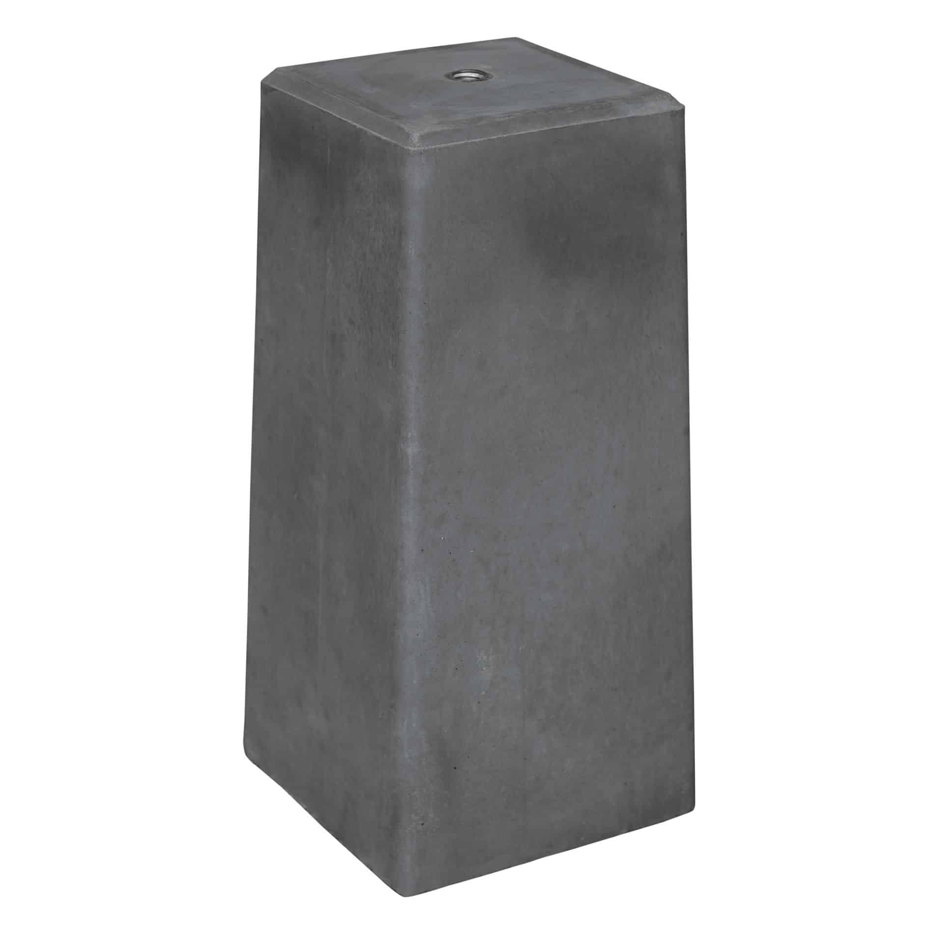 Deze beton poer XL, m20 met schroefhuls en afgeronde hoeken loopt breder uit. de afmeting van de poer is 23*23 > 20*20* 50cm. De poer is antraciet. De poer wordt geleverd INCL. stelplaat.