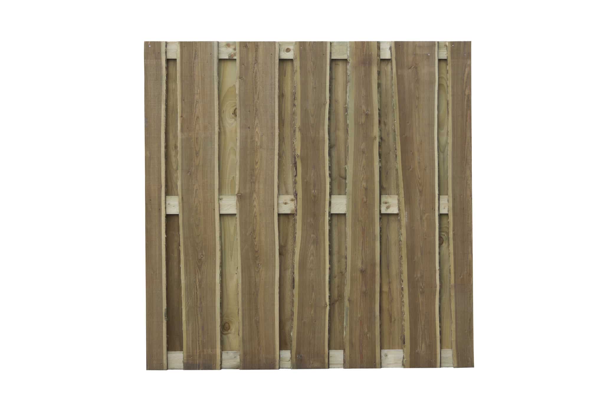 Het Schaaldelenscherm (schutting) is gemaakt van verduurzaamde (geïmpregneerde) schaaldelen. Kenmerken: RVS geschroefd, planken 20×150/200 mm, regels 18×70 mm.
