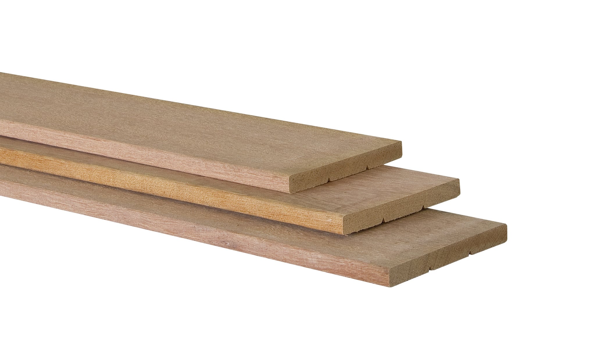 Hardhout (schutting)plank geschaafd duurzaamheidsklasse 1-2: Zeer lange levensduur; vergelijkbaar met het beste tropische hardhout. In verschillende maten verkrijgbaar.