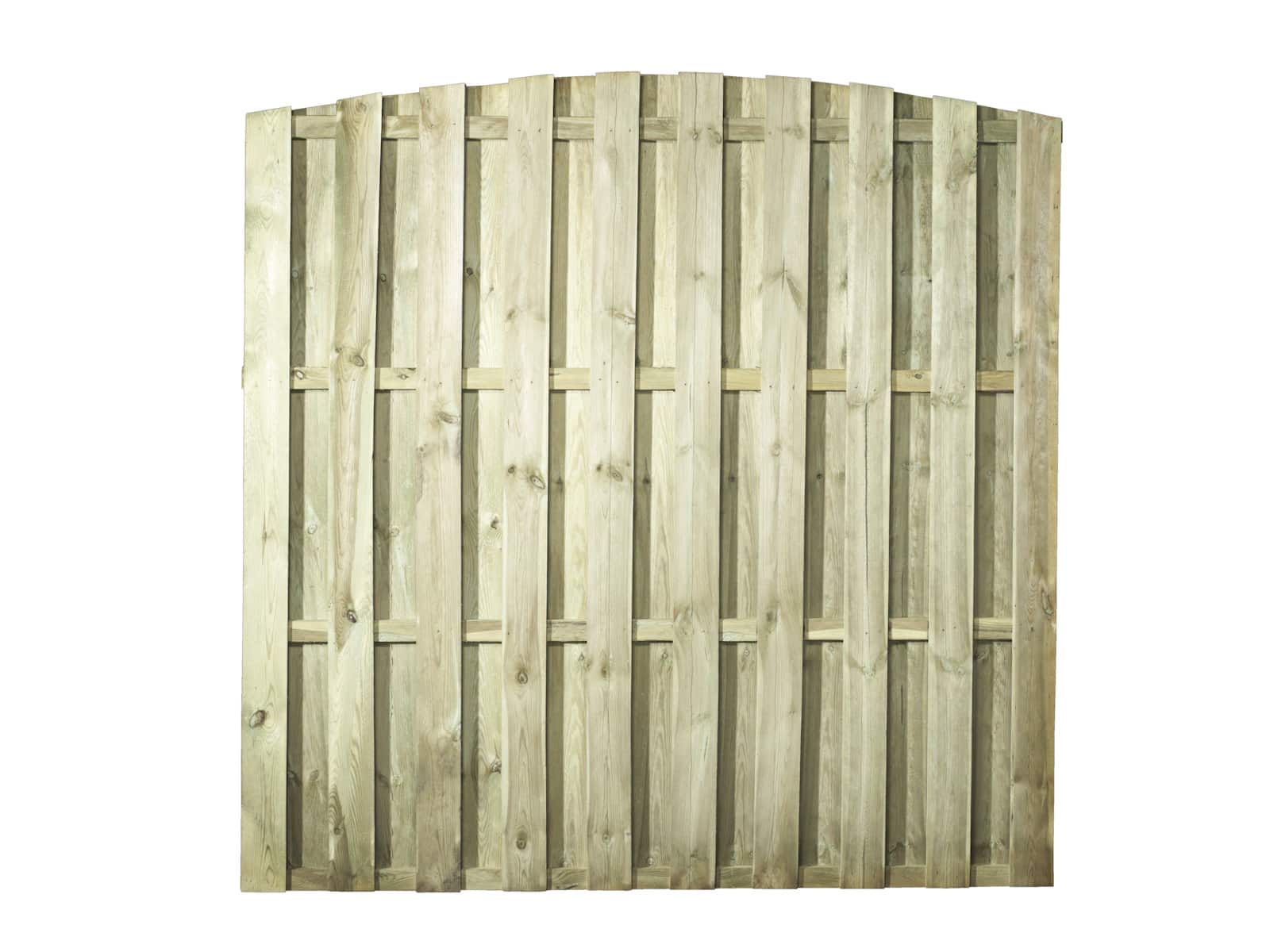 Harns Toogscherm (schutting met ronding aan de bovenkant) Gespijkerd, 19 planken 10×100 mm, 4 regels 20×45 mm