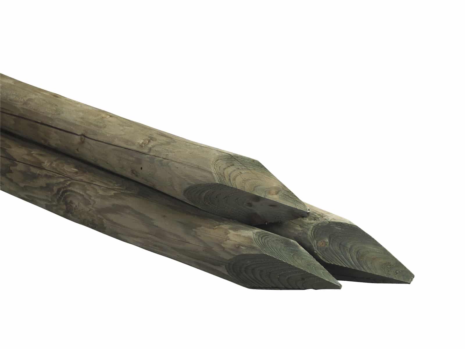 Deze naaldhouten afrasteringspaal is geschild, dungepunt en vacuümdruk verduurzaamd (geïmpregneerd).