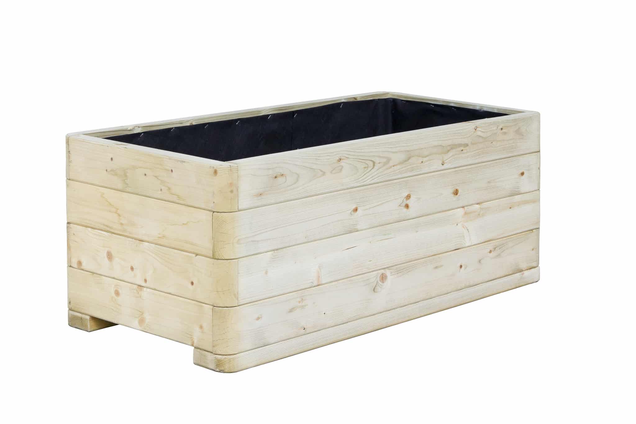 Deze vierkante en rechthoekige plantenbak is van naaldhout, vacuümdruk verduurzaamd (geïmpregneerd) en universeel overschilderbaar. Daarnaast heeft de plantenbak afgeronde hoeken en een frisse look door de mooie lichte kleur.  De plantenbakken zijn in twee maten verkrijgbaar.