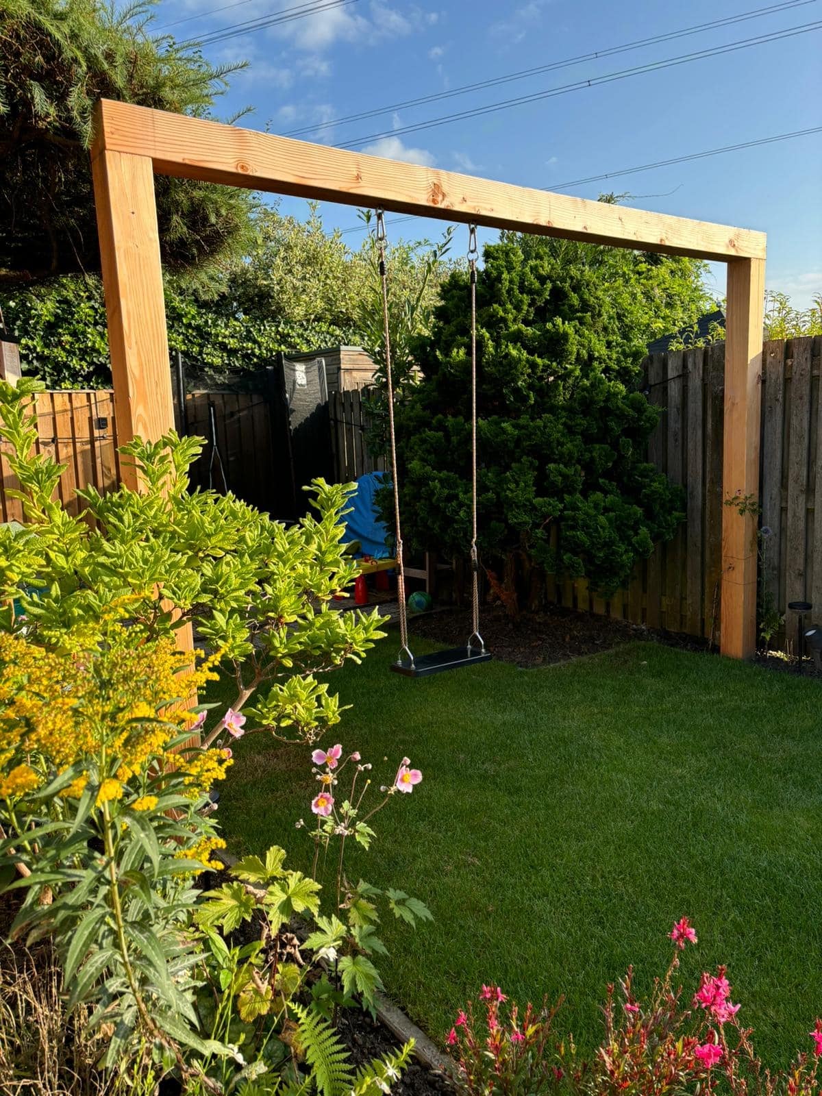 Maak zelf een duurzame houten schommel bij jou in de tuin! Een schommel is voor zowel kind als ouder een mooie uitbreiding van het buitenleven. In dit doe het zelf bouwpakket vind je de materialen voor het plaatsen van een complete houten schommel.