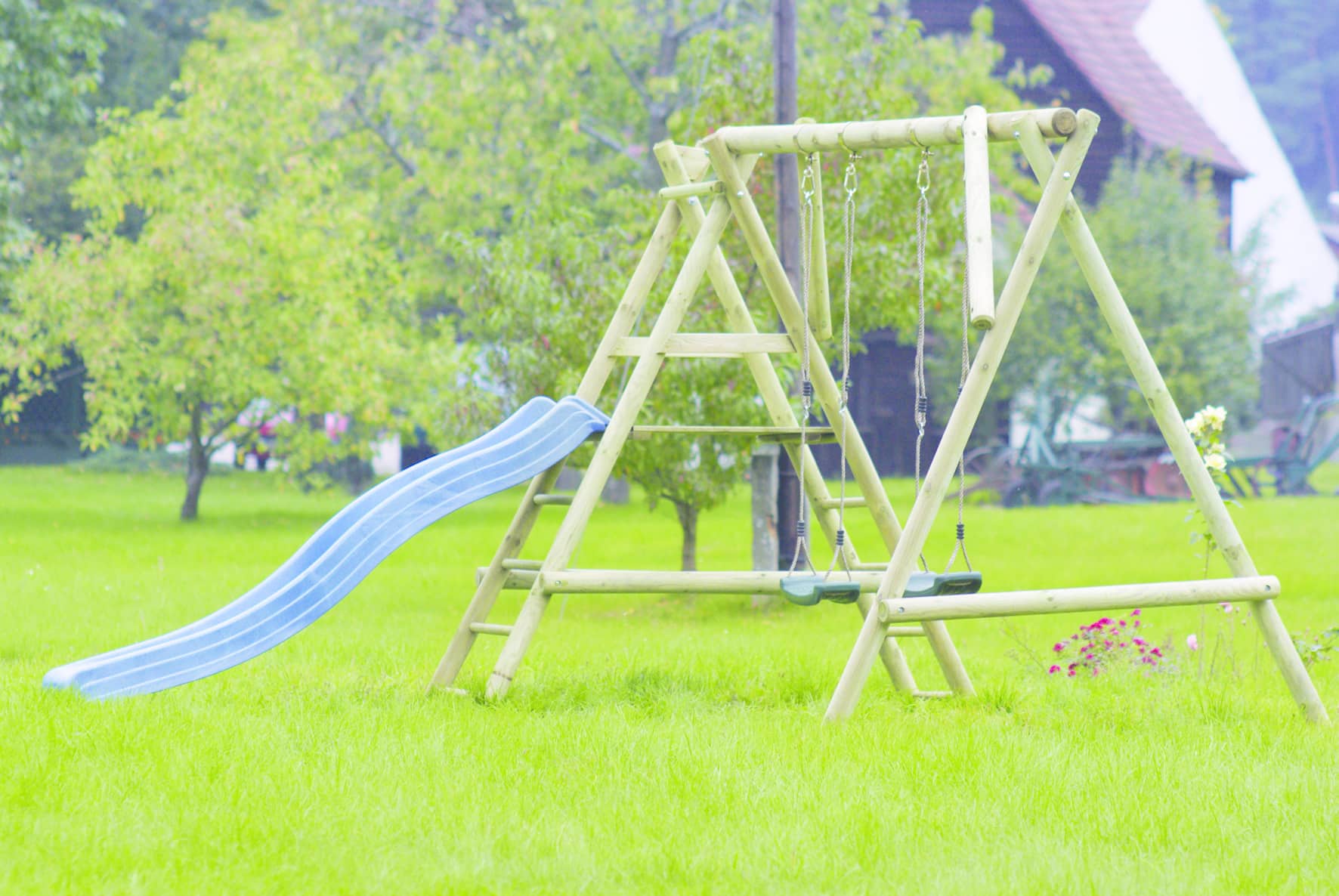 Dit naaldhouten, Celfix (verduurzaamde) speeltoestel heeft staanders van ⌀ 8cm, bovenste ligger ⌀ 10 cm, ophanghoogte voor een glijbaan 120cm. Toestel Lex is inclusief 1 schommel en bevestigingsmateriaal. Let op! Glijbaan is exclusief.