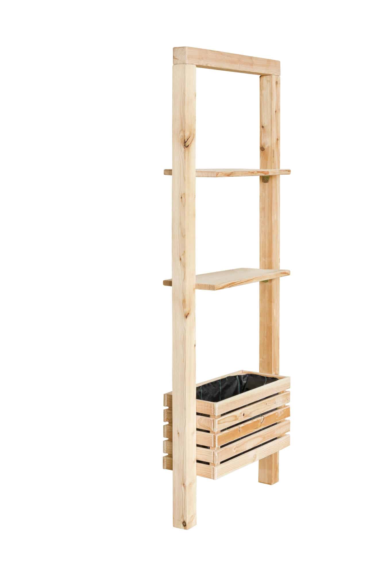 Deze kast inclusief plantenbak beschikt over twee planken en 2 voetsteunen. De afmetingen zijn: 74x25x184 cm.