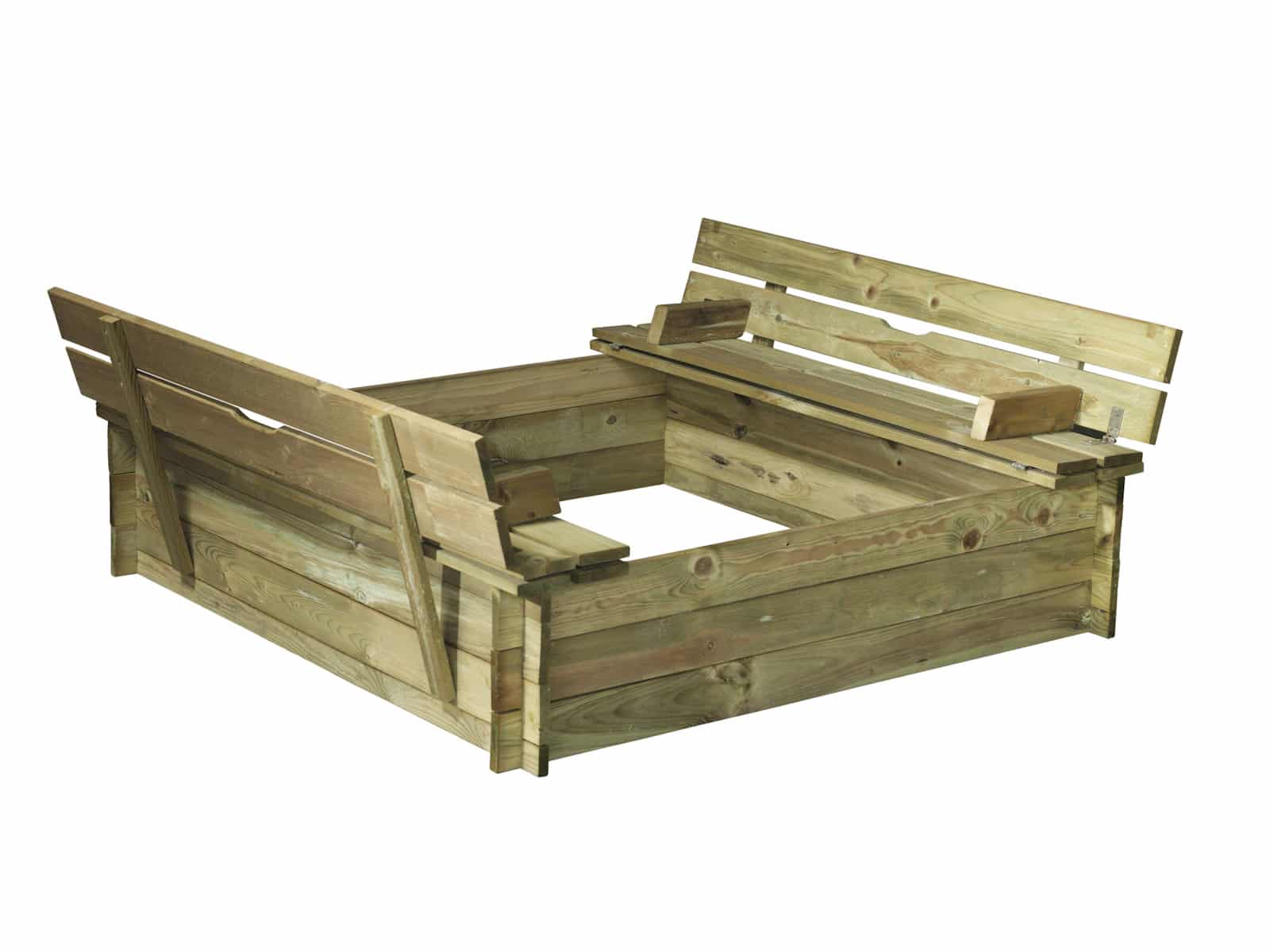Deze multifunctionele zandbak heeft een deksel, waarbij je met het openklappen er twee bankjes van kan maken (zitdeksel). De bak is van verduurzaamd hout en is universeel overschilderbaar. De zandbak is gemaakt van Naaldhout dat met Celfix onder vacuümdruk verduurzaamd (geïmpregneerd) is.